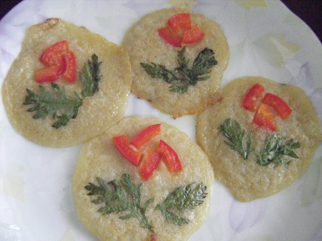 すりおろし 片栗粉 卵 だしの素などを混ぜて弱火のフライパンで焼きました。