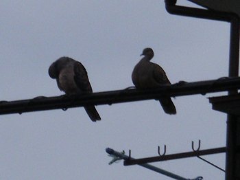 夕方 ふと窓の外を見ると 電線に鳥が2羽
