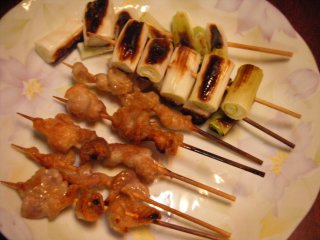 家庭菜園のネギ これも串煮さして焼く。