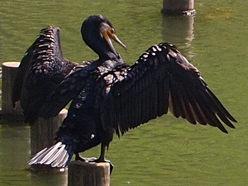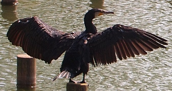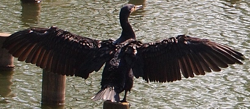 羽を広げて鵜は羽を乾かしているようにみえる。
