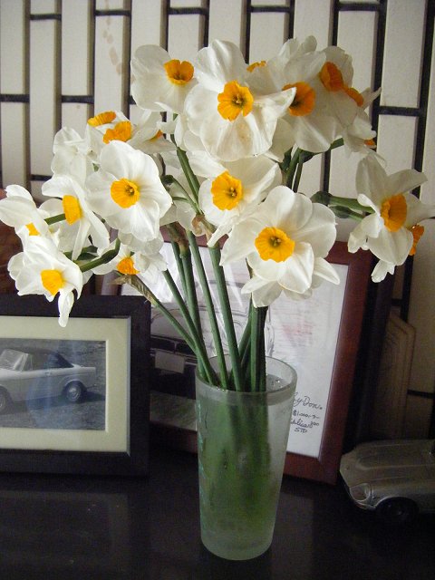 朝 窓から庭を見れば水仙がみんな倒れていた。
