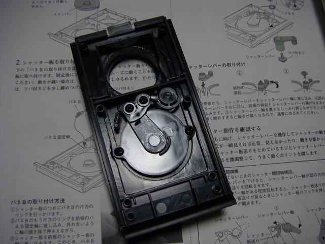 シャッターのバネがあまりにも小さくて、引っ掛けるところが見えなかった。