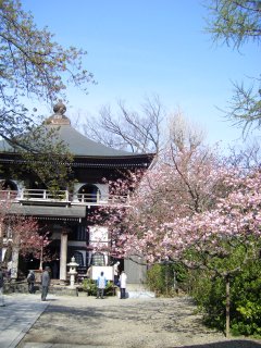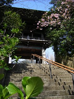 山門をくぐると正面に見えるのが、さざえ堂形式の三世堂。