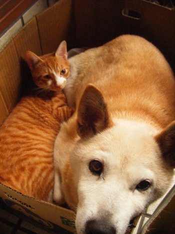 関係者の話によりますと すずめ家先住のはな夫人(♀84)と新参猫チャト(♂15)は当初の犬猿の仲を脱し、家族の知らない間に急速にその関係が接近した模様。今後もこの関係が続くのか家族は気をもんでいる。