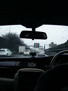 首都高は大渋滞で 渋滞を知らせる道路標示版がどの道もまっかっか。