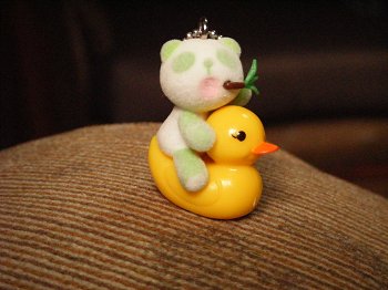 アヒル大将に乗ったお茶パンダ2cmほどの小さいの