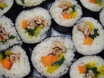 巻き寿司かと始めは思っていましたが、酢飯ではなくて胡麻油で味付けしているらしい。
