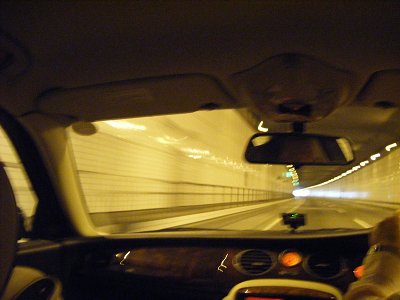 このトンネルの上は海です。