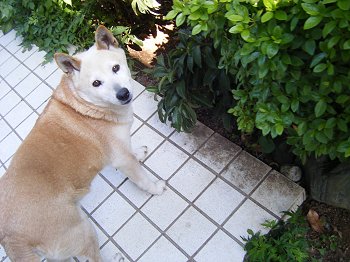 「はな」は私の前にくっついて座り どけてくれないので作業は時々中断されますが、芋虫など掘り起こしたら大変「はな」が食べてしまいます。