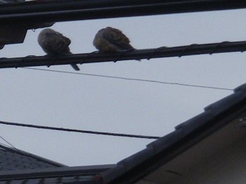 夕方 ふと窓の外を見ると 電線に鳥が2羽