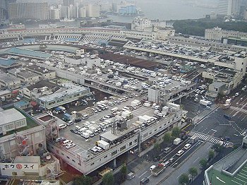 廊下から見える築地市場 夜中から車がいっぱいいっぱい集まってきて、活気あふれる場所。