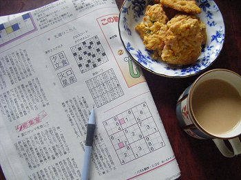 朝 一番に新聞を取りに行って