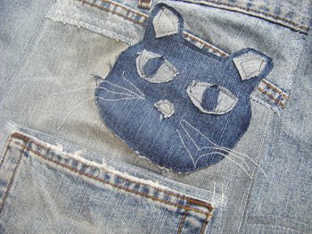 猫の顔はポケットの内側 色あせてないところ