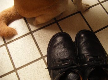 当然の結果として 2足の泥だらけの靴が玄関に並ぶ。