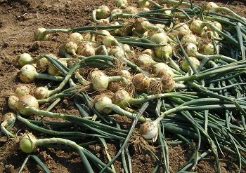 畑で玉葱がたくさんとれた。