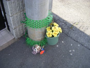 電柱におしっこする犬や猫を近づけないための細工