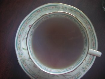 矢車菊の青い色が出て お茶が青くなるかと写真に撮ったら湯気で霞んでしまいました。