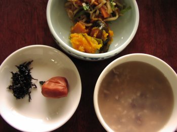 今日の粥は玄米と白米半々と小豆少々