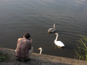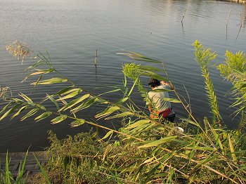 手賀沼に行ったら 仕掛けで魚とりをしている人がいました。